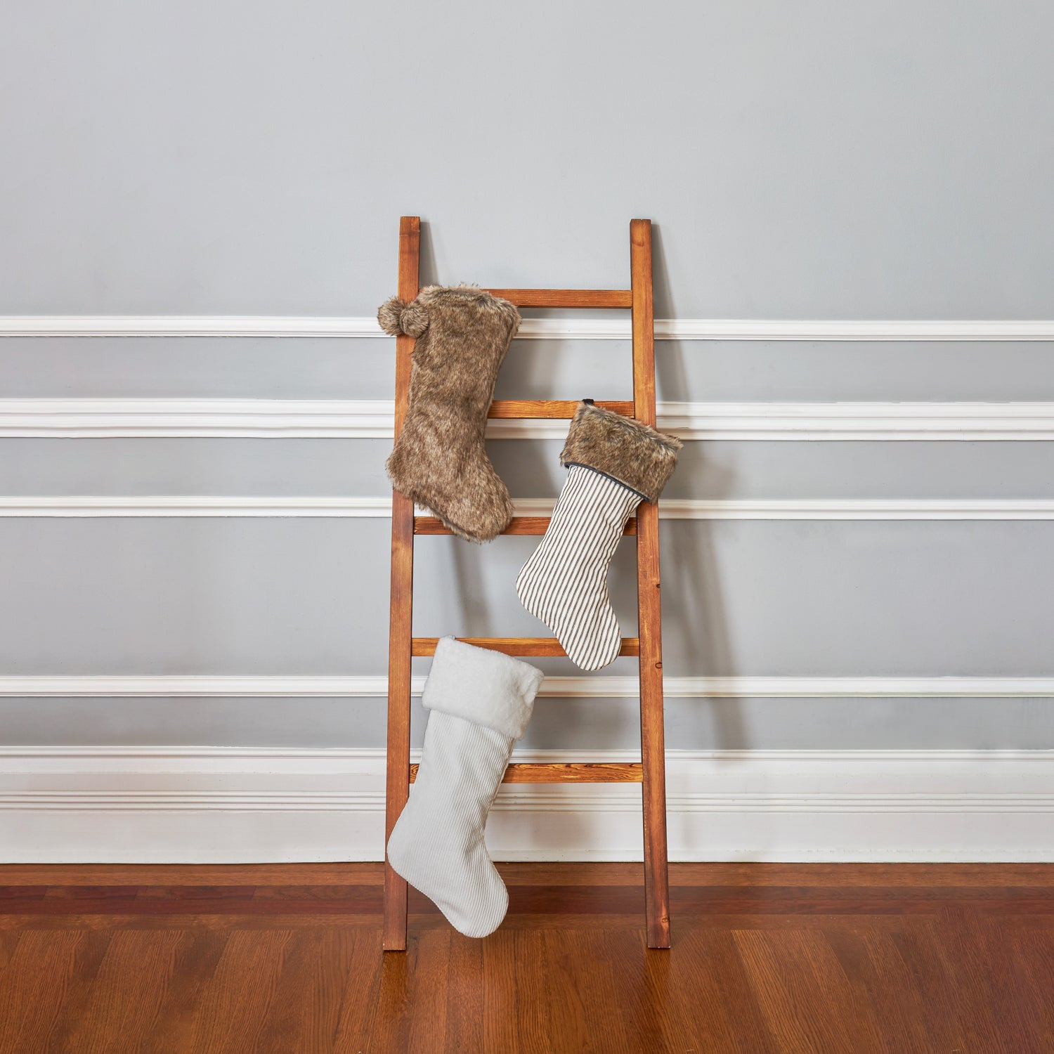 Give your home an understated, rustic charm addition this Christmas with Ticking Stripe Stocking with Faux Fur Cuff. Its luxuriously soft, warm faux fur cuff and ticking stripe pattern are a beautiful neutral blend that brings a sophisticated and chic flair to your holiday décor.